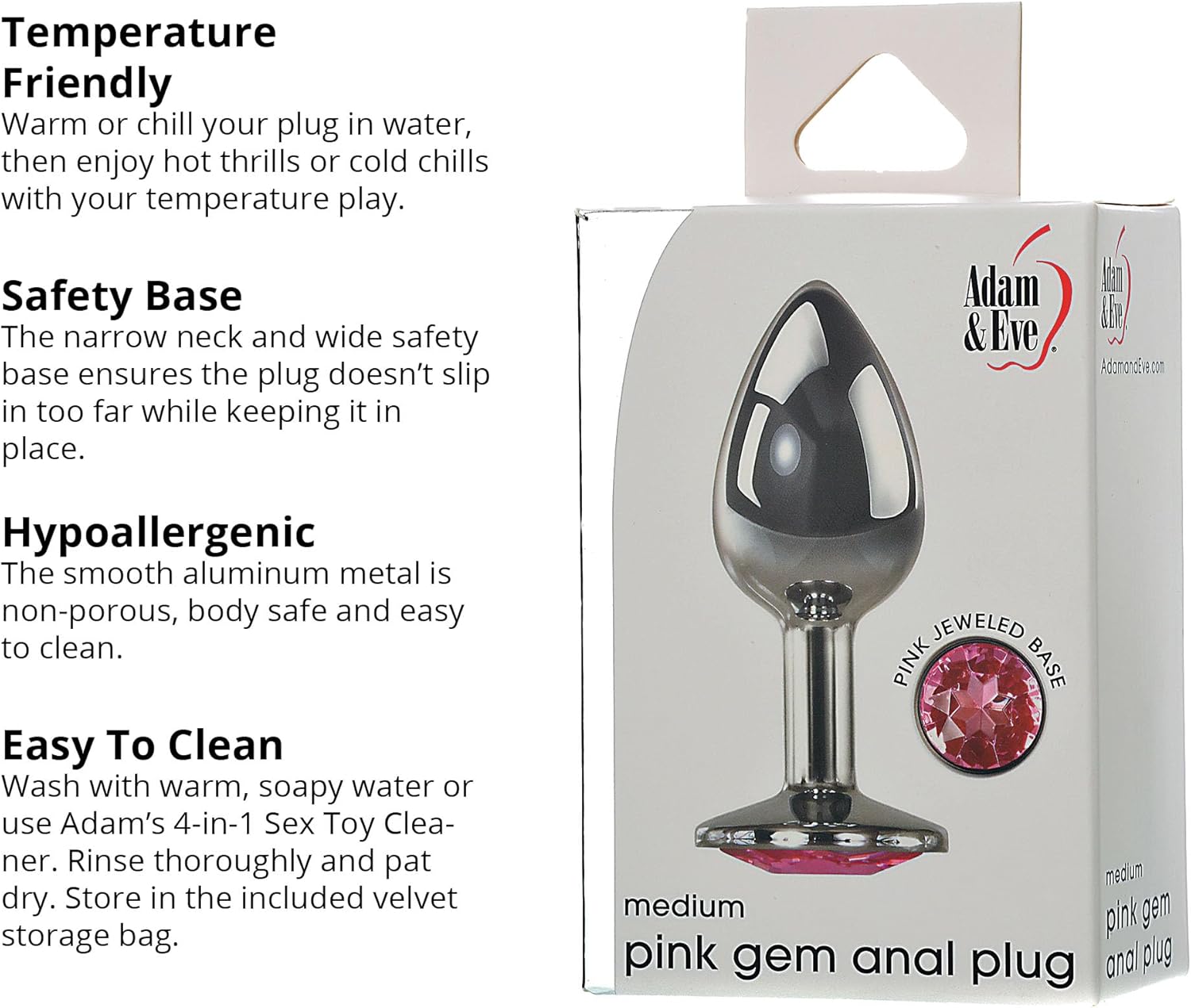 ELEGANT METAL ANAL PLUG WITH JEWELED BASE: Add a touch of sparkle to your pleasure with the Adam & Eve Gem Anal Plug. Made from polished aluminum, this stylish plug is adorned with a brilliant faux jewel for a sexy, luxurious look. Enjoy the smooth, weighty feel as it enhances your anal play experience with stunning aesthetics and intense stimulation