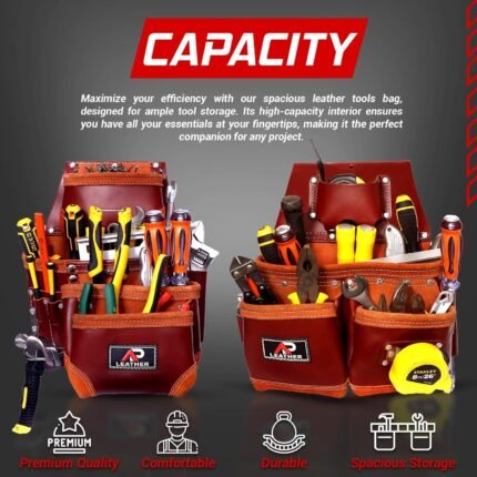 Ap-Leather Real cowhide oil tanned Leather Tool Belt/pouch/framer Set for Men/women Carpenters, Framers, Electricians, Gardeners & Construction Work with 26 Pockets.