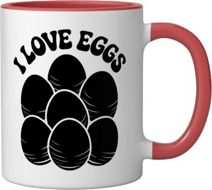 I Love Eggs Enthusiast Cheerful Artwork Ceramic Mug, Red/White