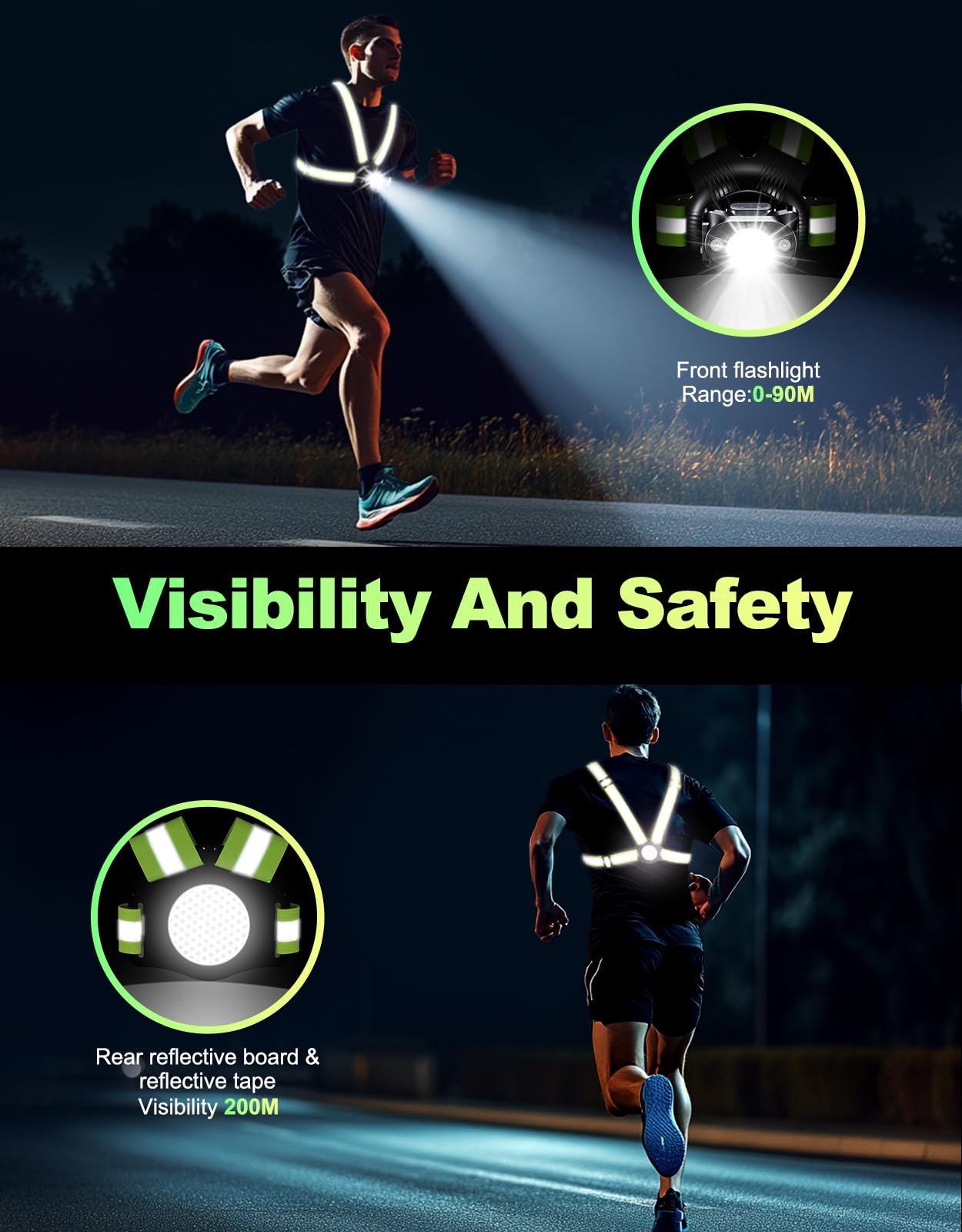 ISEYOU Running Lights For Runners, 500 Lumens 45 Adjustable Running Light With Dual-Reflective Straps, IPX4 Waterproof & USB Rechargeable Chest Light Vest For Night Walking/Cycling/Jogging