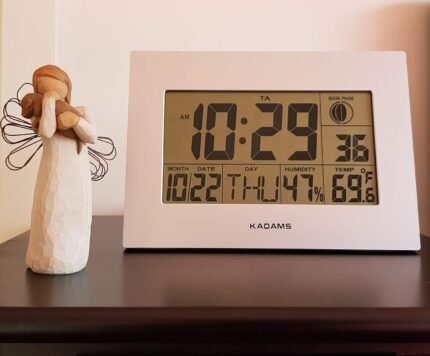 KADAMS Large Digital Wall Clock – Dual Alarm with Snooze Function – Wall Calendar – Moon Phase – Temperature & Humidity Display – Multiple Mounting Options – Battery Operated (Silver)