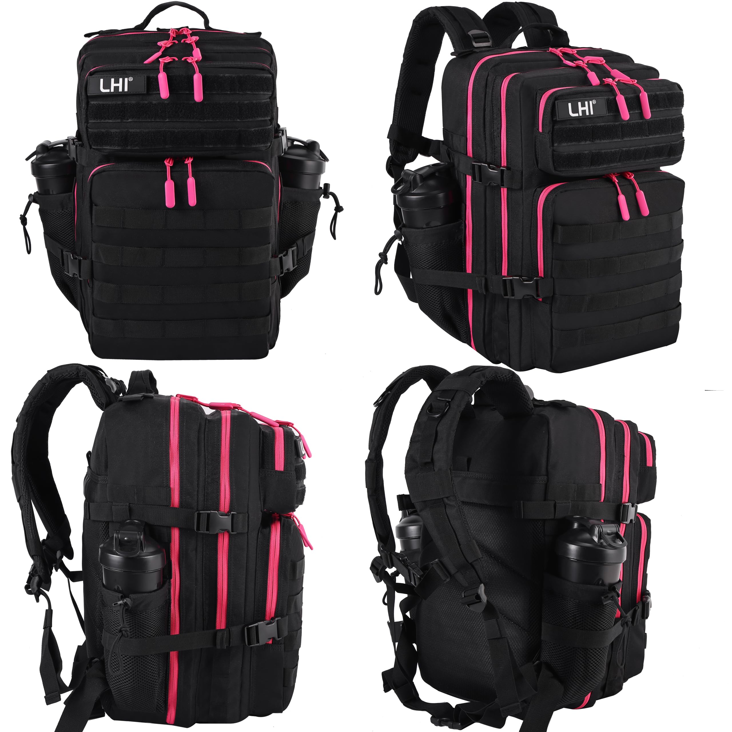 LHI Military Tactical Backpack For Men And Women 45L Army 3 Days Assault Pack Bag Large Rucksack With Molle System – Black With Red Zipper