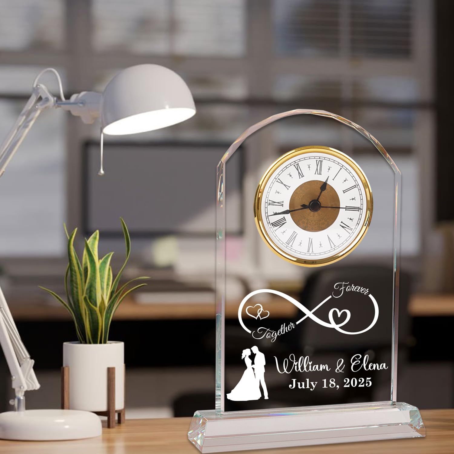 Personalized Crystal Wedding Clock, Together Forever Engraved, Personalized Anniversary Clock, Crystal for Him or Her