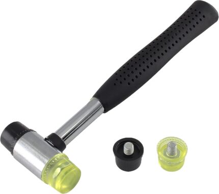 Rubber Mallet Hammer 25mm Double-Face Nylon Rubber Hammer, Soft & Hard Head Mallet with Replacement Heads for Jewelers, Woodworking, Floor Installation