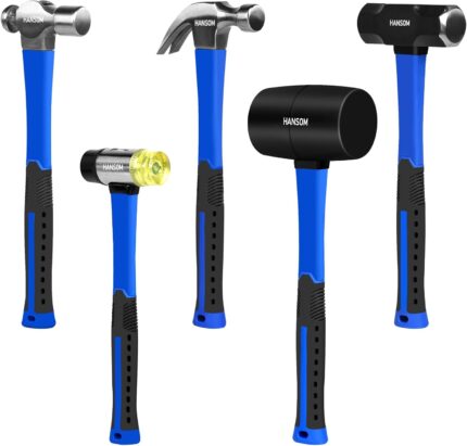 5-Pack Hammer Set,Rubber Mallet 32oz, Double-Faced Mallet 22oz,16oz Claw Hammer,16oz Ball Peen Hammer,3lb Sledge Hammer,Ergonomic Handle
