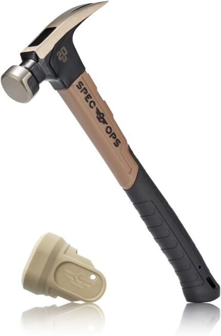 Spec Ops Tools 20 oz Fiberglass Hammer, 13 Inch, Soft Mallet Cap, Shock-Absorbing Grip, 3% Donated to Veterans