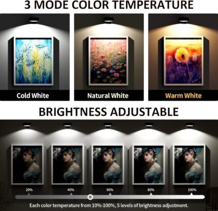 Picture Lights for Wall, Rechargeable Battery Operated Wireless Magnetic Painting Lights with Remote Dimmable and Timer, Wall Decor Lights with 3 Lighting Modes for Art Display (Black, 3Pack)