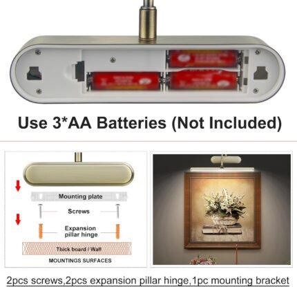 Picture Light,3AA Battery Art Lights for Paintings,Wireless Wall Lighting,Remote Control Accent Light with Timer and Dimmable for Frame,Portrait,Dartboard-Antique Brass