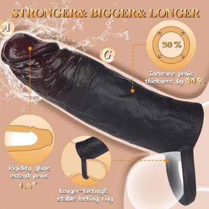 2 Pcs Reusable Penis Extender Sleeve Enlarge,Soft Stretch Cock Girth Enhancer Sleeve Enlargement,Delayed Ejaculation G Spot Stimulation Glans Condom,Male Adult Sex Toys for Men Couples