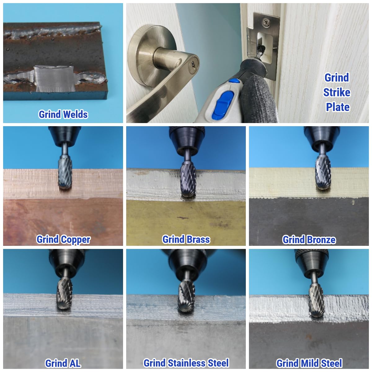 Perfect for tight spaces than grinding wheel and grinding discs, great for detail work. For lots of materials removal please use our larger shank burrs bits and 500W+ rotary tool. 6 years returnless replacement.