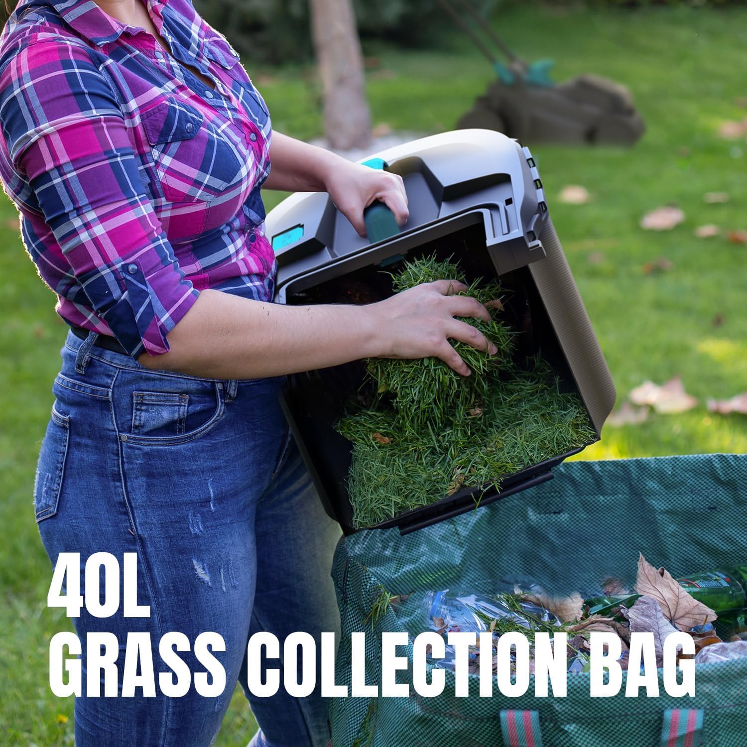 16 Inch Deck Width : The cordless lawn mower features a 16 inch deck width that allows you to handle grass quickly and easily, also comes with a 40L grass collection bag, perfect for gardens, yards and farms