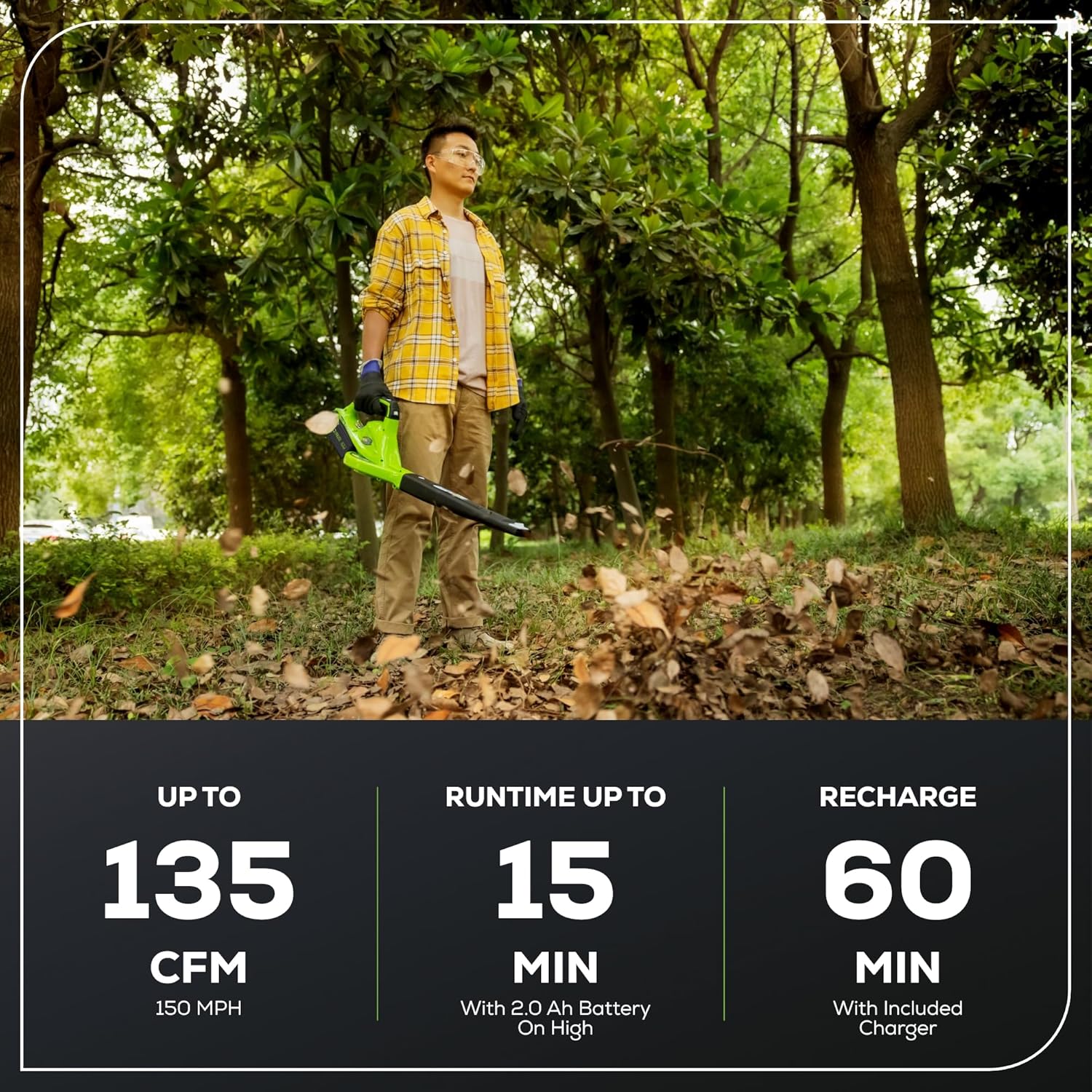 Greenworks 40V Leaf Blower/Sweeper, 150 MPH, Lightweight, Quiet, with 2.0 Ah Battery and Charger, Perfect for Residential Lawn Care, Leaf Blowing Debris, Dust, Light Snow, and More