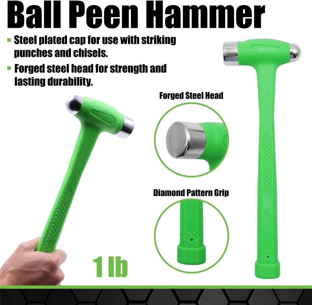 Includes 12 oz brass hammer, 1 lb ball-peen hammer, and 1/2 lb dead blow mallet