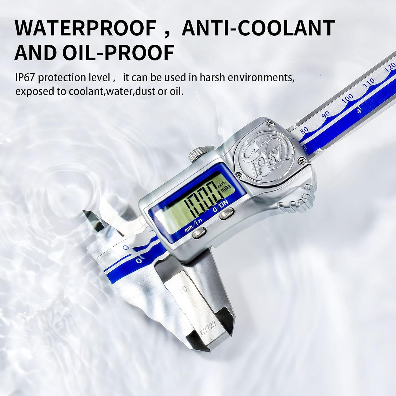 IP67 Absolute Origin Waterproof Electronic Digital Vernier Caliper Measuring Tool Stainless Steel,0-6 inch/150mm, Large LCD Screen,Extreme Accuracy