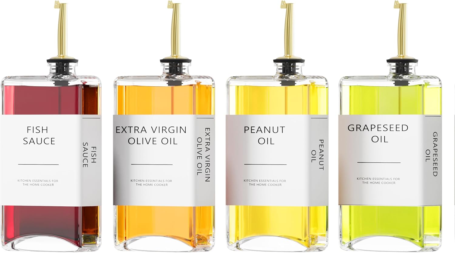Kitchen Cooking Oil Dispenser Set, Olive Oil & Vinegar Bottles, Soy Sauce Dispenser – 4 Pieces, Gold, Elegant Book Design, Durable, Leak-Proof, Easy-Pour Spouts, Perfect for Kitchen, Dining Table