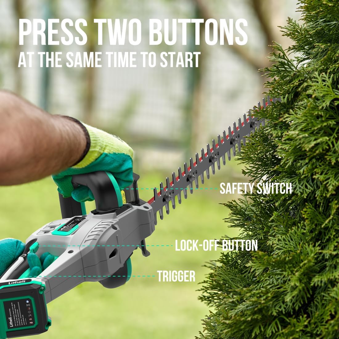 Litheli 20V Cordless Hedge Trimmer 20 Inch, Power Hedge Trimmer for Bush & Shrub Cutting, Trimming, Pruning, with 2.0Ah Battery and Charger Included