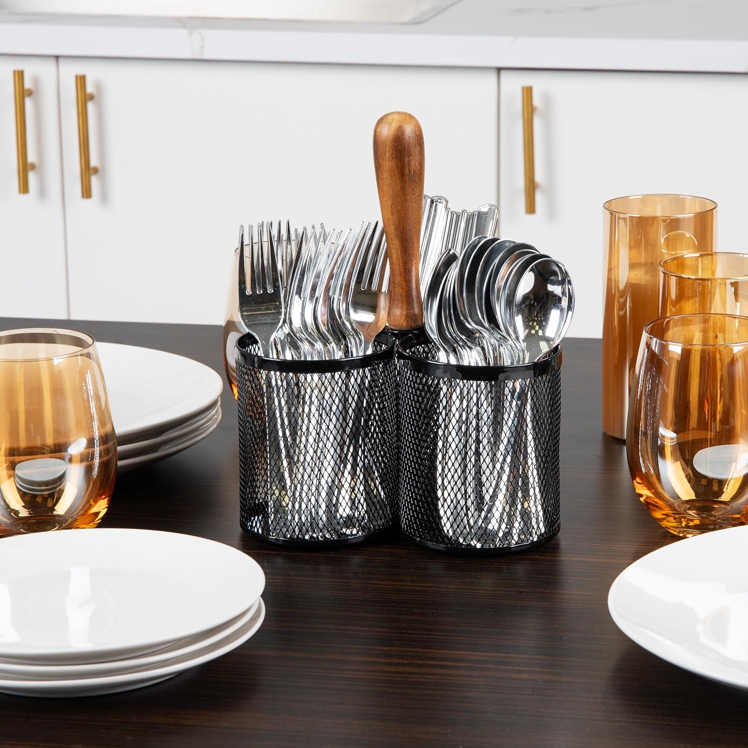 Mind Reader Utensil Holder, Silverware Organizer, Caddy, Cutlery Holder, Kitchen, Metal Mesh, 7.5″L x 7.5″W x 9.75″H, Black