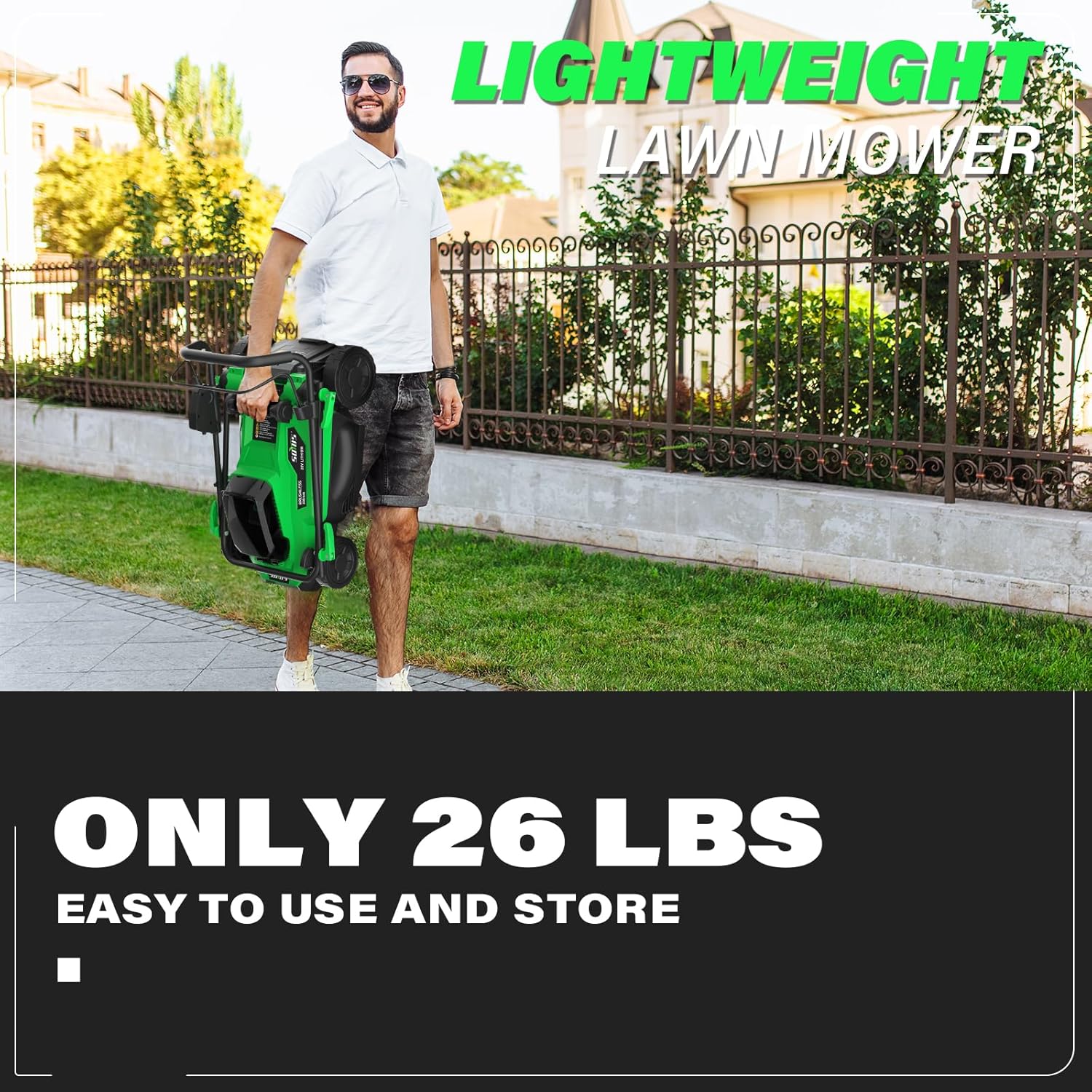 ćLightweight DesignćOnly 24 pounds, easy to push and move, and mowing work can be done easily. Package Includes: 20v 13-Inch lawn mower, 4.0Ah battery, faster charger, operator’s manual.