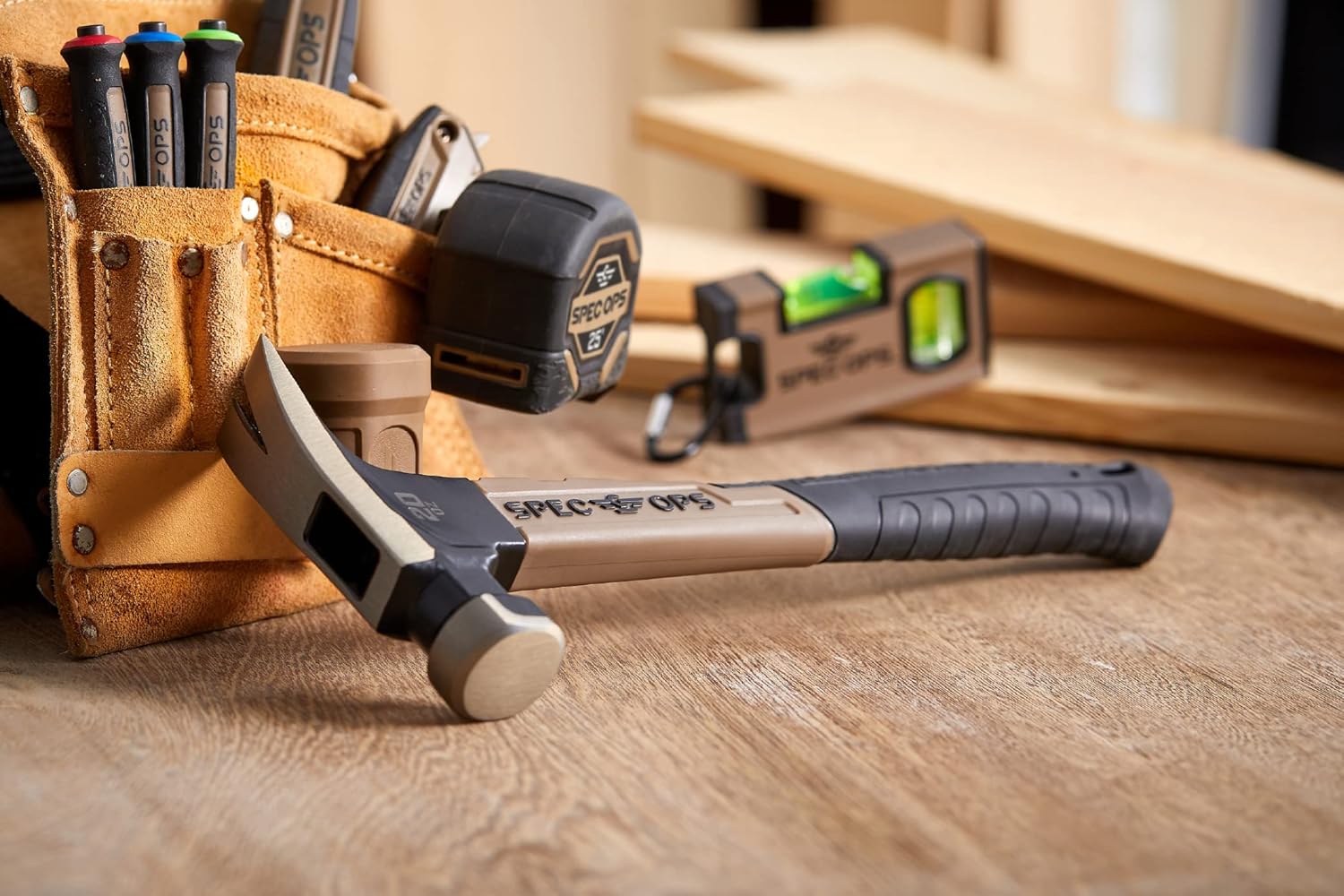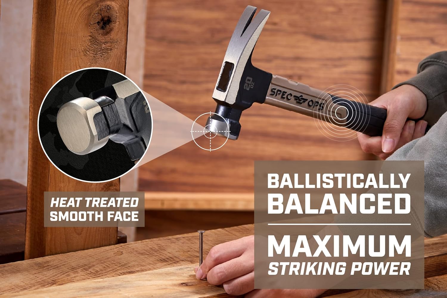 Spec Ops Tools 20 oz Fiberglass Hammer, 13 Inch, Soft Mallet Cap, Shock-Absorbing Grip, 3% Donated to Veterans