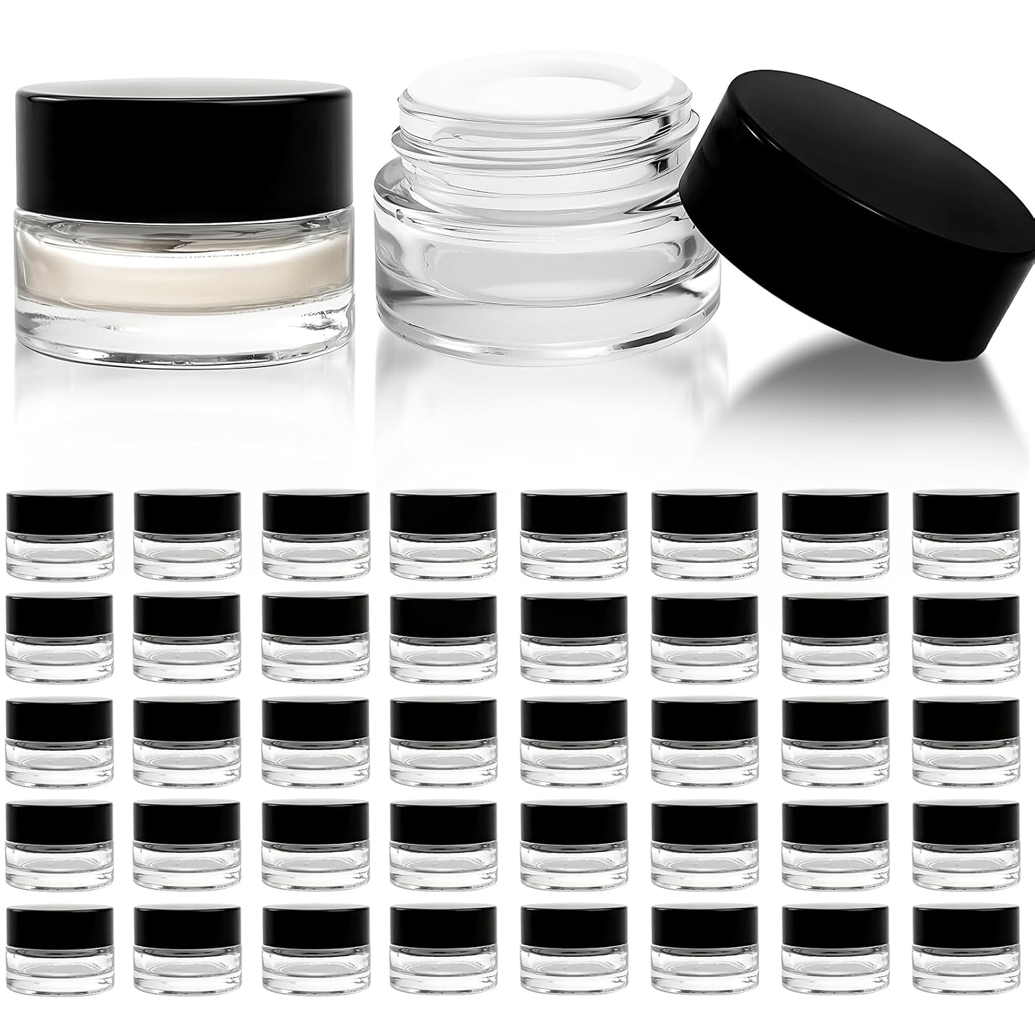 • 90 Pack 5ml Small Clear Jars with Black Lids, Empty Glass Cosmetic Containers with Liners Round Bulk Airtight Cream Bottle for Beauty Product Samples, Travel, Storing Lotions, Essences $23 Original price was: $23.$19Current price is: $19.